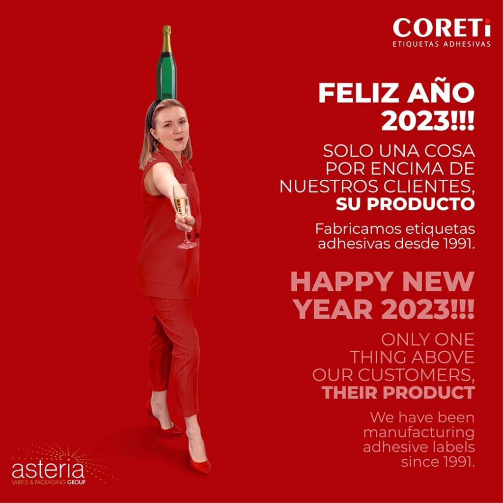 We are saying goodbye to another year and another new one is coming up. From Coreti we wish that 2023 comes loaded with labels for wines, beverages, oil, food, gourmet products, logistics, textile, industrial, pharmacy, … That will mean that everything will go well.