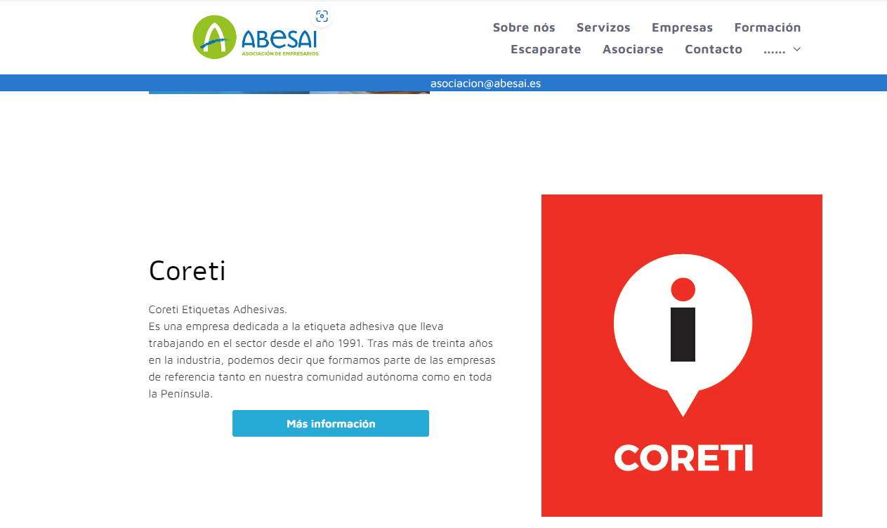 Gracias a la Asociación de Empresarios de Bergondo todas las empresas y usuarios de nuestro entorno pueden contactarnos y localizarnos a través del escaparate que han puesto en marcha en su página web. Allí podrán encontrar toda la información sobre Coreti y sobre nuestro trabajo.