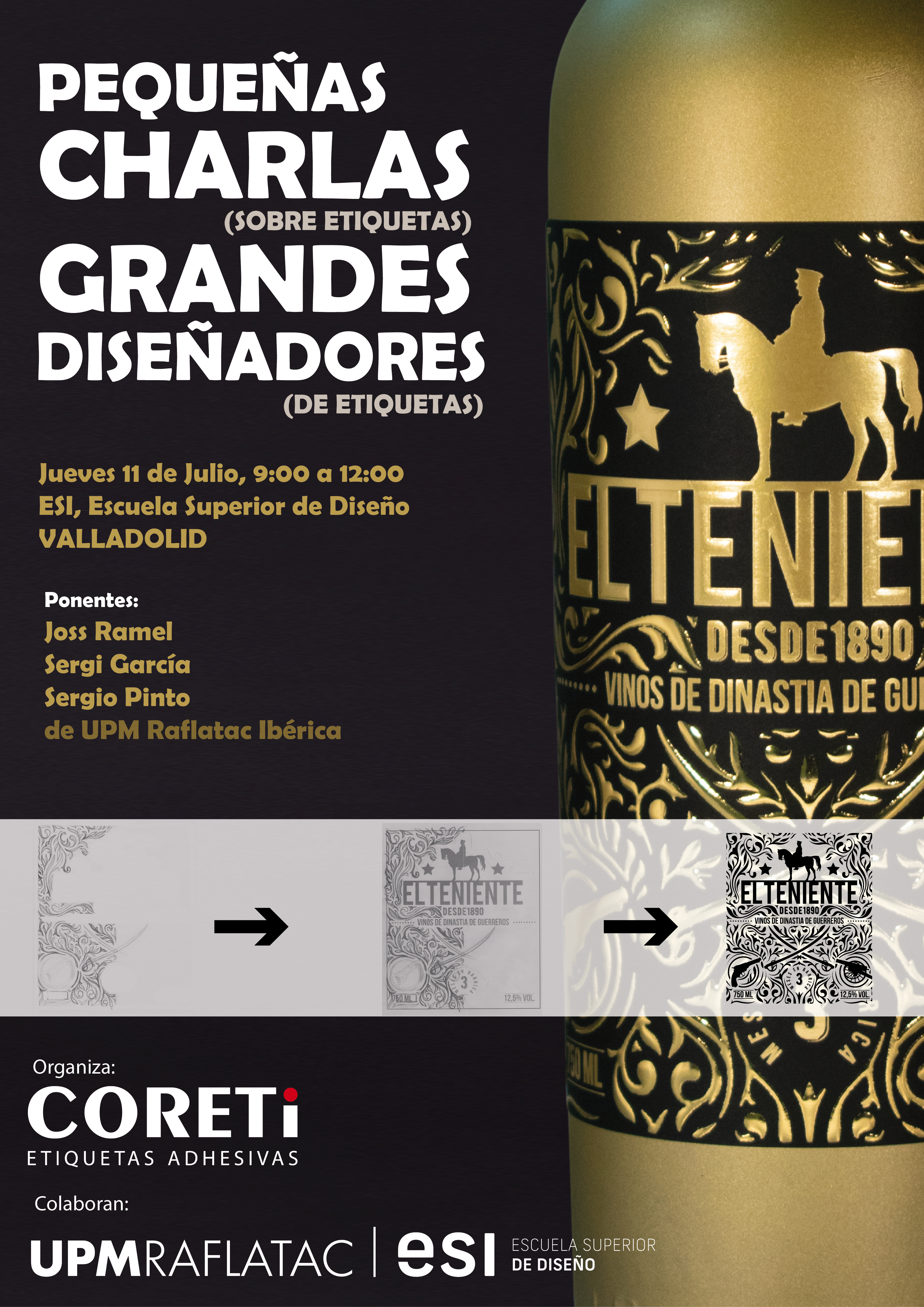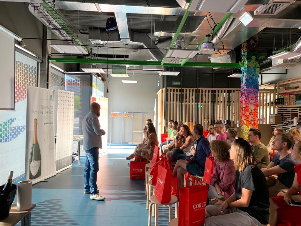 Cerca de medio centenar de personas, entre diseñadores profesionales y alumnos de la Escuela Superior de Diseño (ESI) de Valladolid, participaron en la Jornada “Pequeñas Charlas (sobre etiquetas), Grandes Diseñadores (de etiquetas)” que hemos organizado desde Coreti. Para su realización hemos contado con la colaboración de nuestro proveedor UPM Raflatac y de la propia escuela vallisoletana. El objetivo del encuentro ha sido, sobre todo, hablar sobre creatividad en el mundo de la etiqueta adhesiva, así como de técnicas y comportamiento de los materiales aplicados a nuestro sector.
