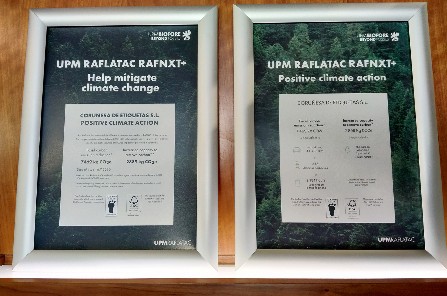 Acabamos de recibir de manos de UPM Raflatac el diploma ACCIÓN CLIMÁTICA POSITIVA para nuestra compañía, convirtiéndonos en la primera empresa del sector etiquetero en España que recibe esta certificación. Este documento indica que en Coreti hemos conseguido reducir en todo el 2019 la emisión de carbono a la atmósfera en casi 7,5 toneladas (el equivalente a un coche circulando 44.725 kilómetros, a 373 barbacoas, o a 2.184 horas de conversación por teléfono móvil), así como incrementar la capacidad de absorción de carbono por la naturaleza en casi 3 toneladas, lo que absorbe un árbol durante 1.445 años.