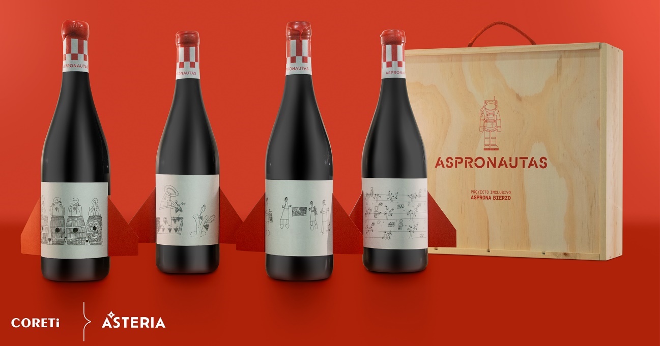 Desde Coreti hemos colaborado con proyectos como el de Asprona Wine y la Bodega 13 Viñas, que promueve la recuperación del viñedo tradicional de El Bierzo y la inclusión laboral de personas con discapacidad intelectual en el sector vinícola, a través de su vino Aspronautas. De hecho, hemos tenido el privilegio de ser los encargados de la impresión de la etiqueta adhesiva de este vino, haciendo realidad el trabajo de diseño del estudio de Pablo Guerrero, también premiado en la III Gala Premios Aspronautas celebrada en Ponferrada.