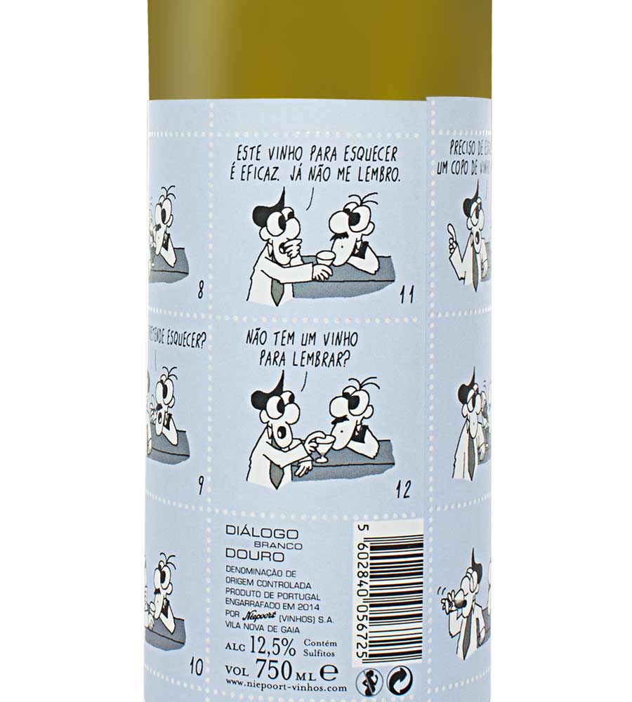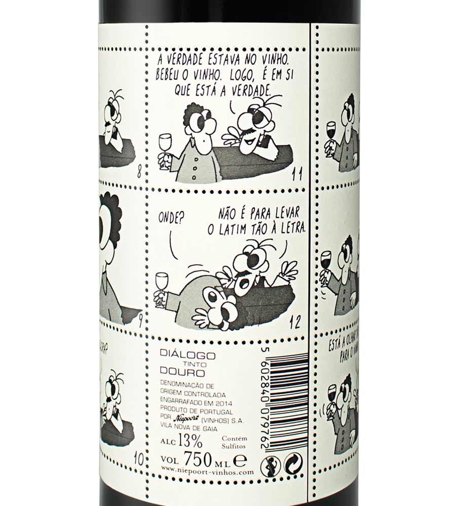 El cómic lo hemos hallado en otros proyectos más cerca de nuestras fronteras, en Portugal. Las etiquetas del vinho branco Diálogo o de Allez Santé de Douro DOC son, tal cual, pequeños comics.