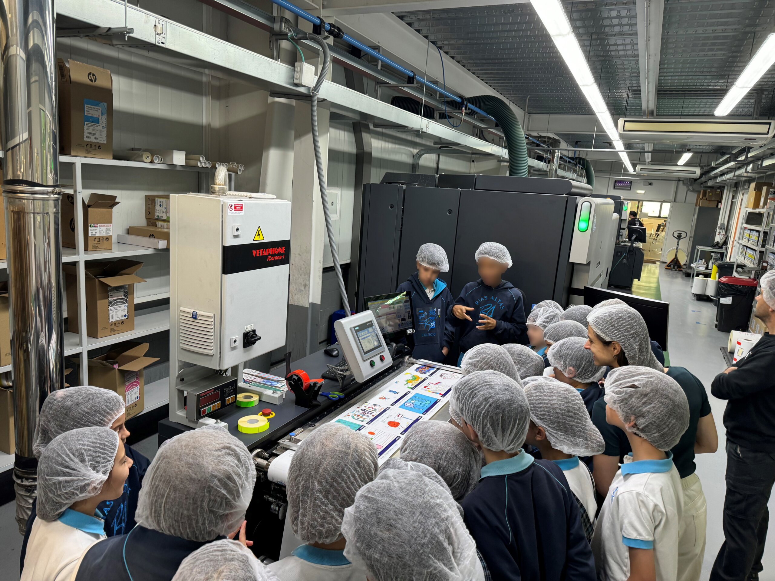 En el marco de una iniciativa impulsada por Coreti, los escolares han podido ver en vivo y en directo la impresión en material autoadhesivo de los dibujos que han preparado especialmente para este evento. Una forma de potenciar el arte entre los más pequeños. Quizá alguno de ellos pueda llegar a formar parte del elenco de grandes diseñadores en nuestra comunidad o ser uno de nuestros futuros impresores.