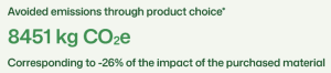 Por tanto, podemos decir que hemos conseguido una reducción del 26% en nuestro impacto medioambiental con el material adquirido.