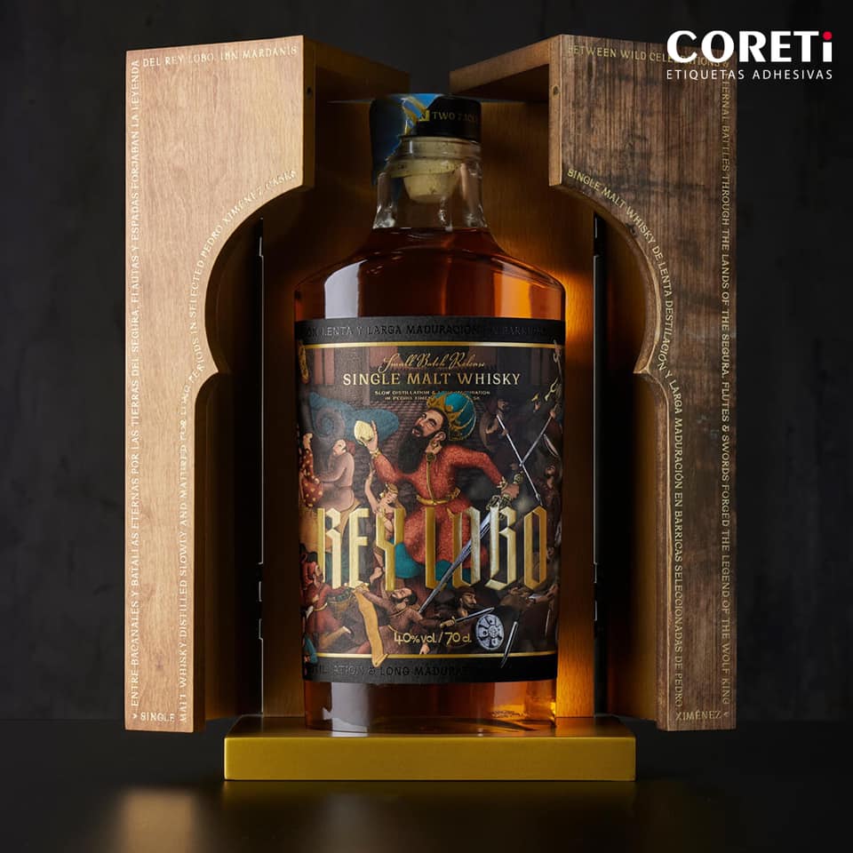 Rey Lobo, que así se llama, es un diseño de luces y sombras que viste este whisky de narrativa histórica y destilación en alambiques de cobre construidos de forma artesanal por maestros del Albayzín. Añejado, además, en la antigua Al-Andalus, a 800 metros de altitud bajo la mirada majestuosa de Sierra Nevada.