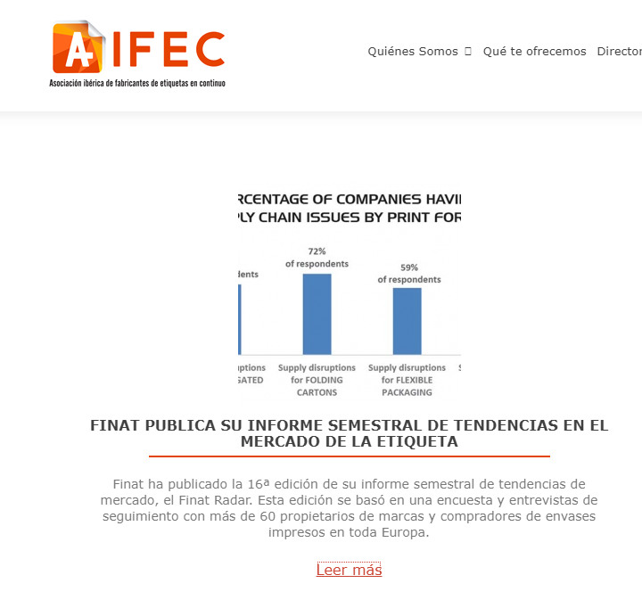 Aifec se ha hecho eco de la publicación del informe semestral de tendencias de mercado de FINAT, denominado FINAT Radar. Este documento recoge las impresiones de lo sucedido en nuestra industria en los últimos seis meses de 2021 de un total de 60 propietarios de marcas y compradores de envases en toda Europa.